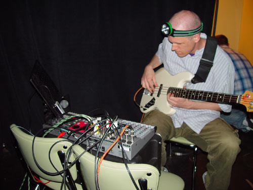 A huge leap forward for this show was the addition of Ben Taylor as musical director. Ben was half of the band for Cinema 2.0, and just as I found with that show, that music fills out a movie enormously, the same was true with The Neutrino Project. Ben played bass, drum machine, effects box, and iPod and everyone said the music was great. (I had set up a VCR to tape the show, but forgot to press record before I left the theater. I had Megan do it when I remembered, but we only got the last 20 minutes of the show. That 20 minutes sounded great, so I trust that the rest was great, too.)